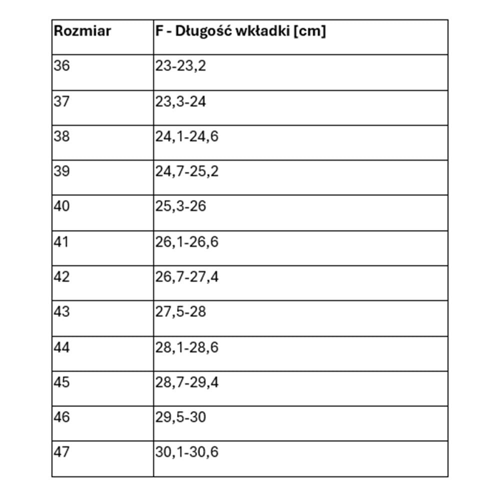 - Wkładka anatomiczna – z lekkiej pianki, dopasowująca się do kształtu stopy