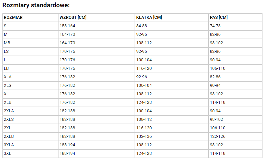 | Rozmiary | Męska |