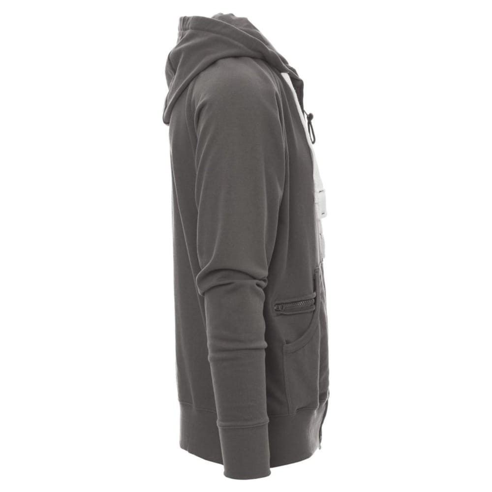 - Bluza z kapturem, rozpinana, wyposażona w solidny zamek błyskawiczny SBS z podwójnym suwakiem metalowym.