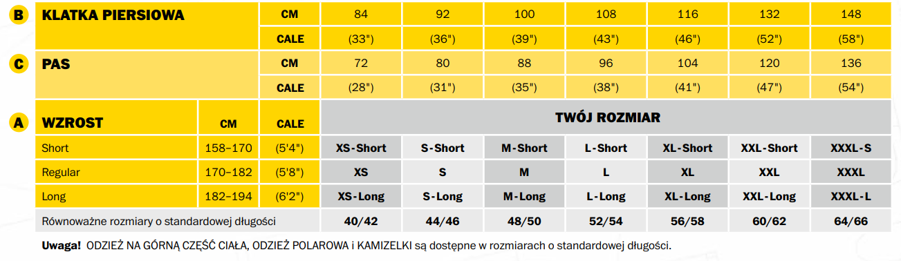 Kurtka produkowana w zakresie rozmiarów XS-XXXL.