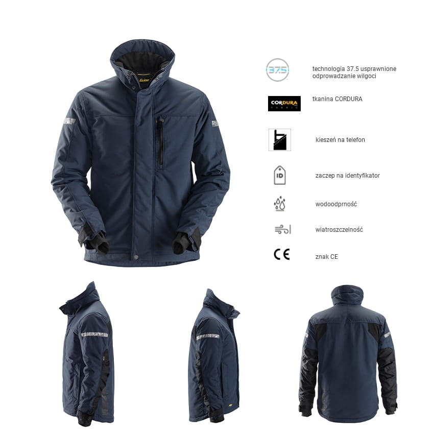 Opis - Kurtka Ocieplana Snickers 1100 9504 AllroundWork 37.5 granatowa
