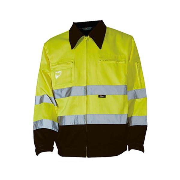 Żółto - granatowa kurtka ostrzegawcza VWTC06B o intensywnej widzialności HI-VIS w kontrastowych kolorach. Została wyprodukowana przez firmę Beta Vizwell specjalizującą się w produkcji odzieży odblaskowej. Spełnia wymagania normy EN 471.