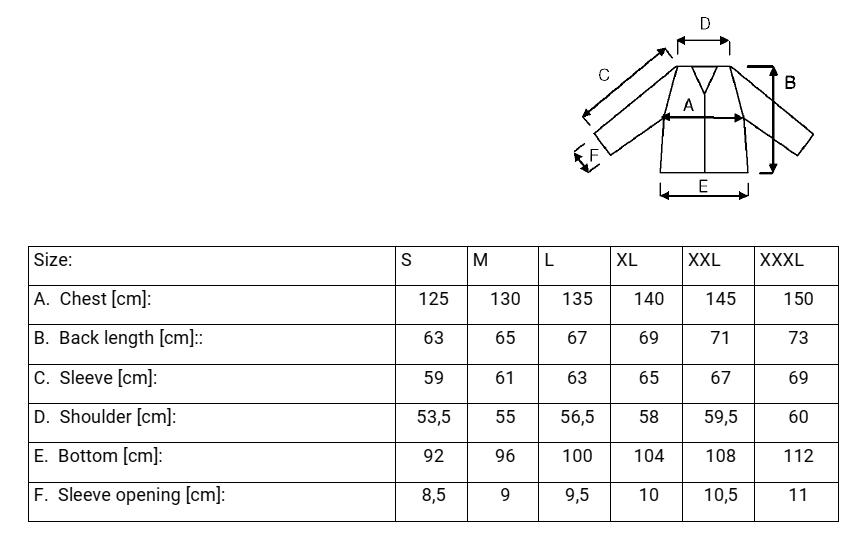 Tabela rozmiarów odzieży marki Industrial Starter