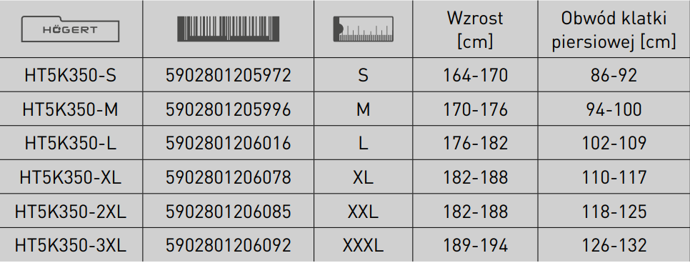 - wzmocniona, specjalistyczna regulacja rękawa zabezpieczająca przed ubytkiem ciepła