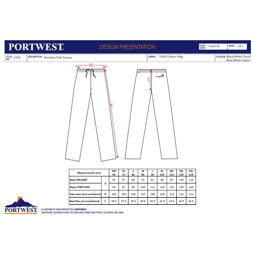Dane techniczne - Spodnie kucharskie PORTWEST C070 tall, czarne