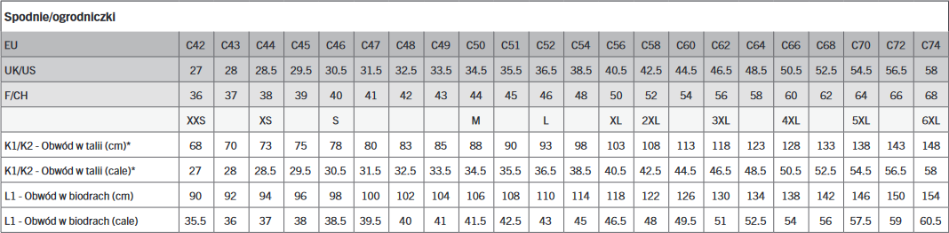 | Inne Technologie i Właściwości | Regulowane kieszenie na kolanach z tkaniny CORDURA® |