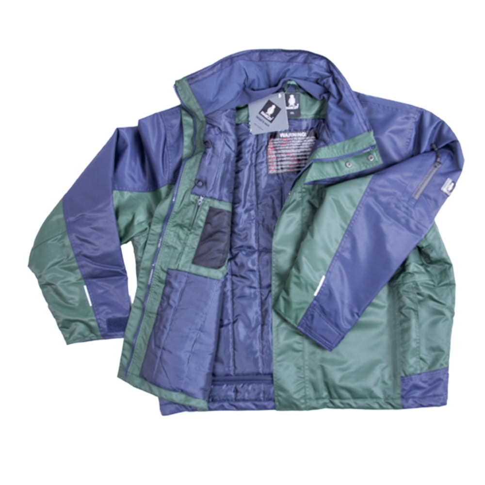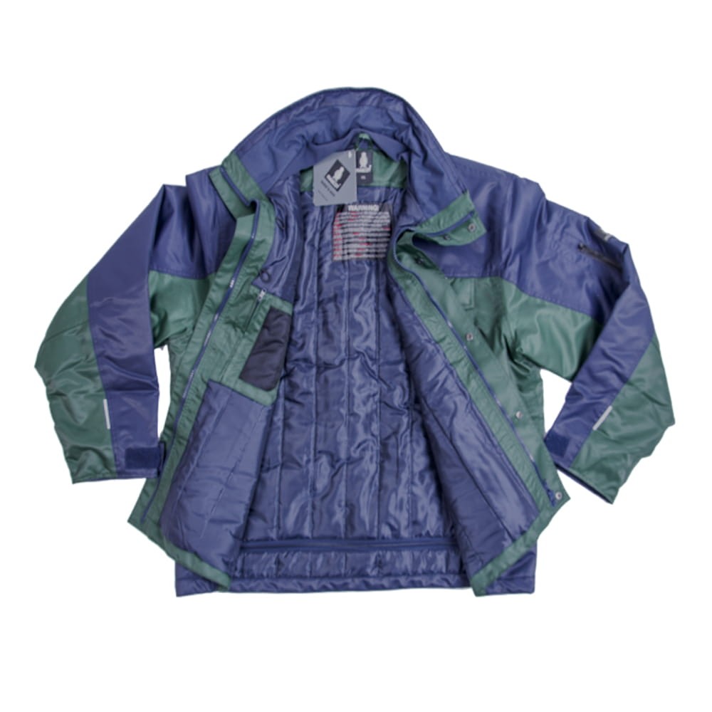 Zielono granatowa kurtka MASCOT GENOVA została uszyta przez duńską firmę MASCOT, specjalizującą się w produkcji doskonałej jakości odzieży roboczej. Posiada właściwości oddychające, wiatro- i wodoodporne. Ergonomiczny krój rękawów zapewnia dużą swobodę w poruszaniu się. Dzięki zastosowaniu pasków refleksyjnych uzyskana jest dodatkowa widoczność dla otoczenia. Posiada podklejane szwy i pikowaną podszewkę.