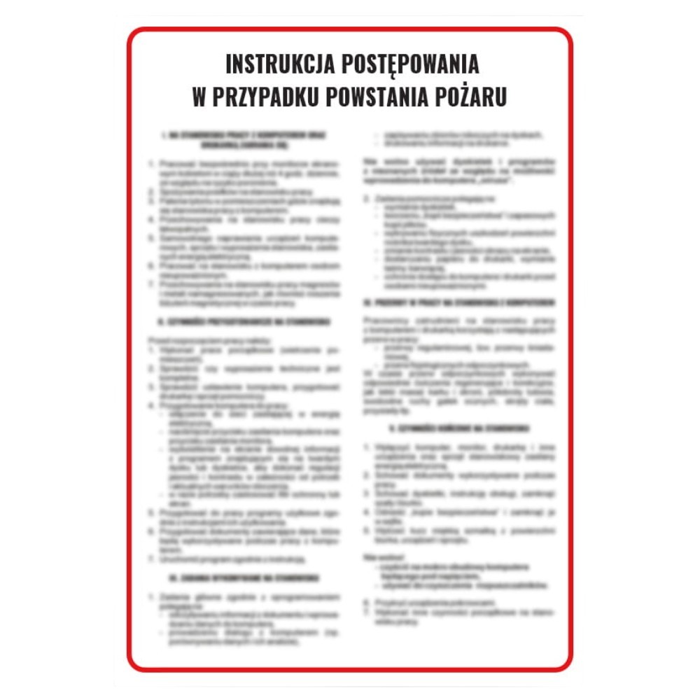 Instrukcja BHP określająca zasady postępowania w przypadku powstania pożaru.