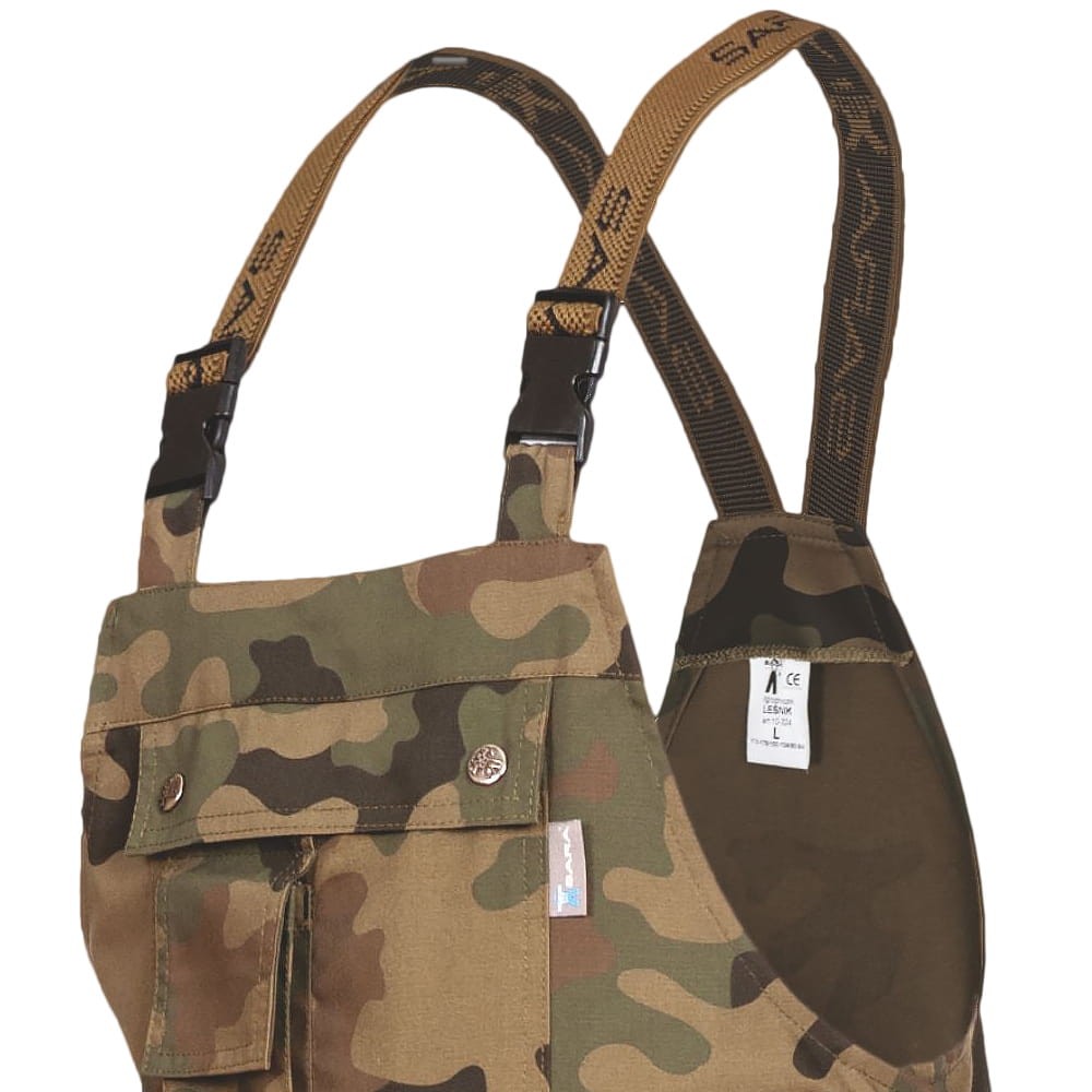Ogrodniczki Sara Leśnik 10-324-55 to idealne spodnie do prac leśnych myślistwa, wędkarstwa oraz gier terenowych np. gry w paintball. Produkowane przez renomowaną polską firmę SARA. Wykonane z wysokogatunkowych materiałów. Posiadają leśny kamuflaż typu "Pantera" wzór 93.